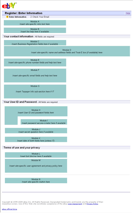 - Framework describing the content layout of the Enter Info page of registration.