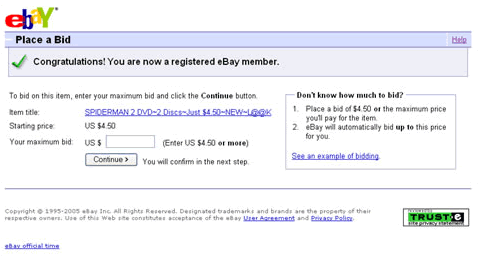 - Instructions on how to bid are provided to the newly registered user. Bidding is a frequently misunderstood concept for new eBay users.