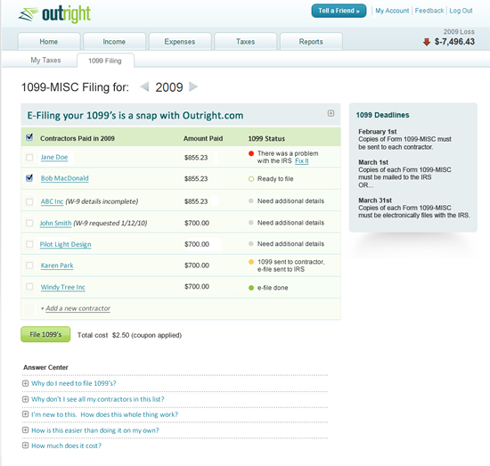 - Small businesses often hire contractors for which they must submit 1099 forms to the IRS. Outright's first monetized feature was to offer simple e-filing of this paperwork.