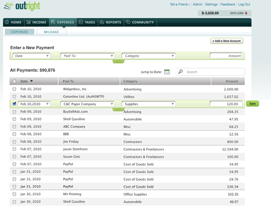 - The main bookkeeping ledger allows users to review and manage all of their income and expenses.