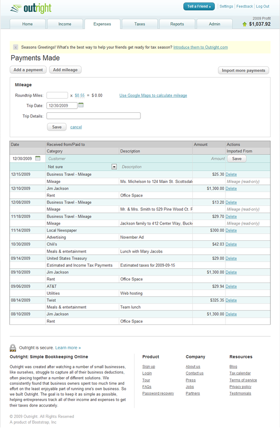 - Mileage is a common deductible expense. This feature incorporated remembered values for repeat trips, and accounted for any rates updated periodically by the IRS.