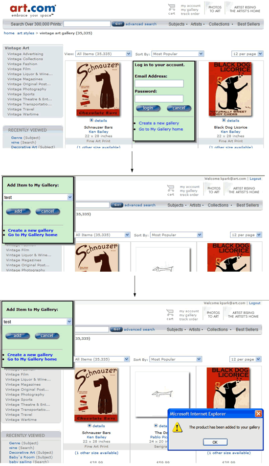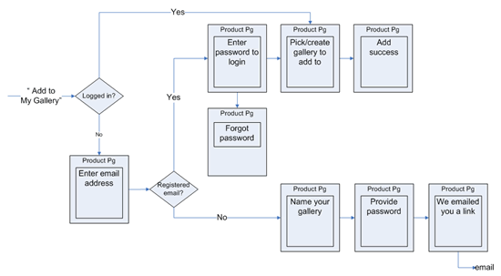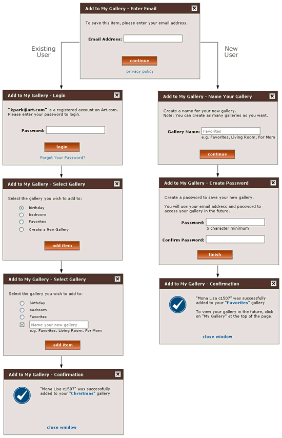 - If new users want to save an item, they are forced to exit the flow, register for an account, create a new gallery in My Account, and then come back to use this feature.