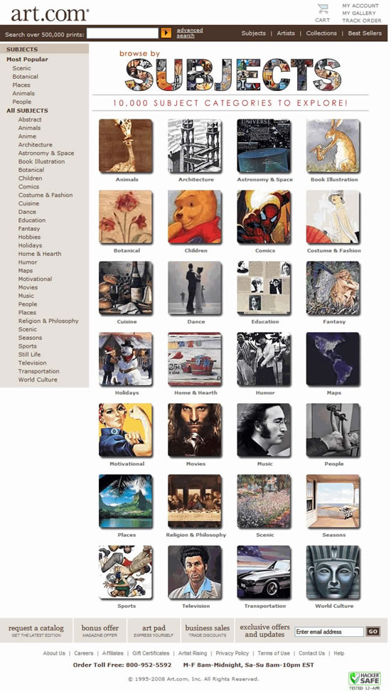 - Each of the most popular categories displays 1 of 3 representative thumbnail images per page refresh.